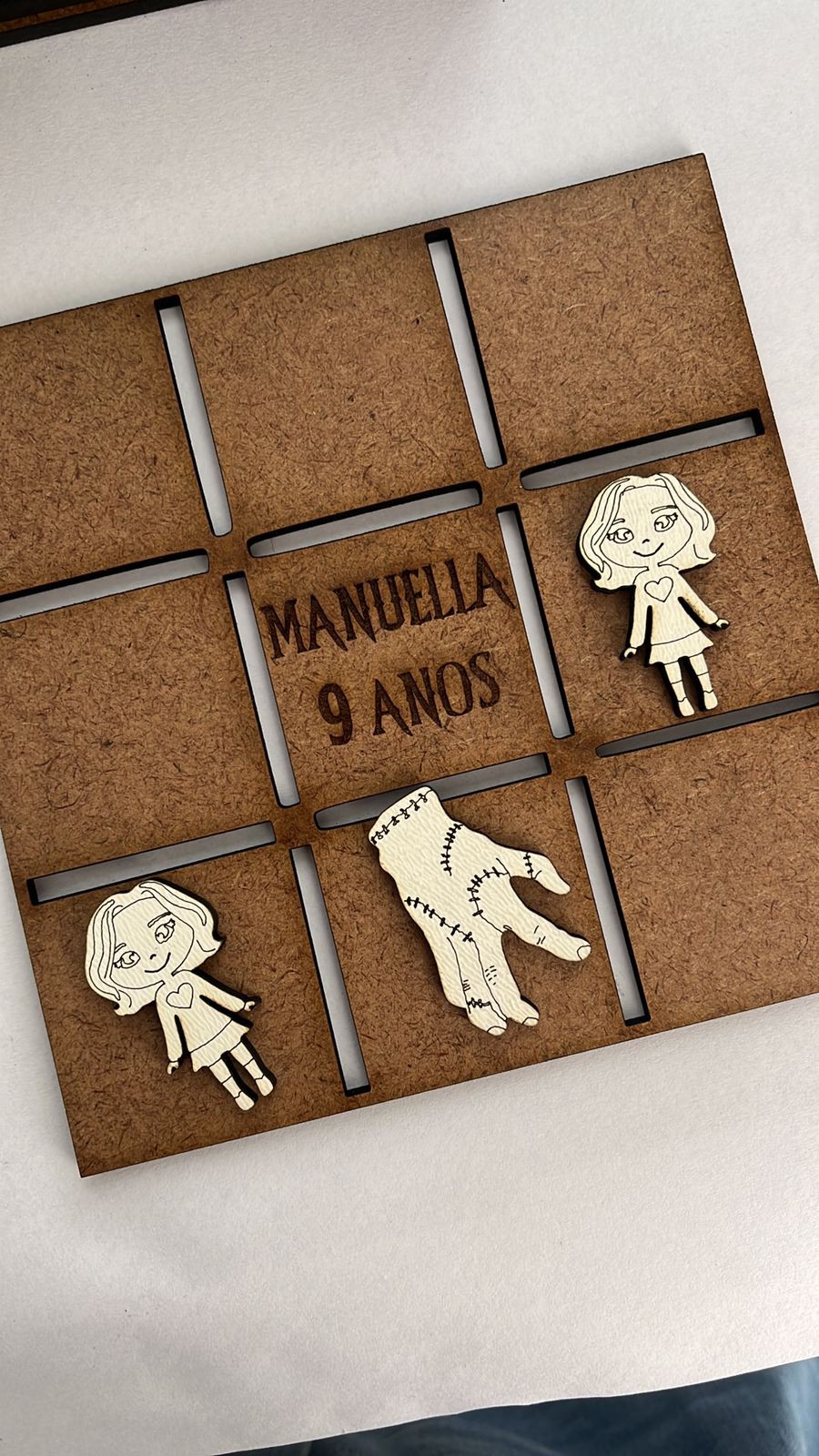 Com 5 peças Mãozinha e 5 peças Enid em mdf branco 3mm.