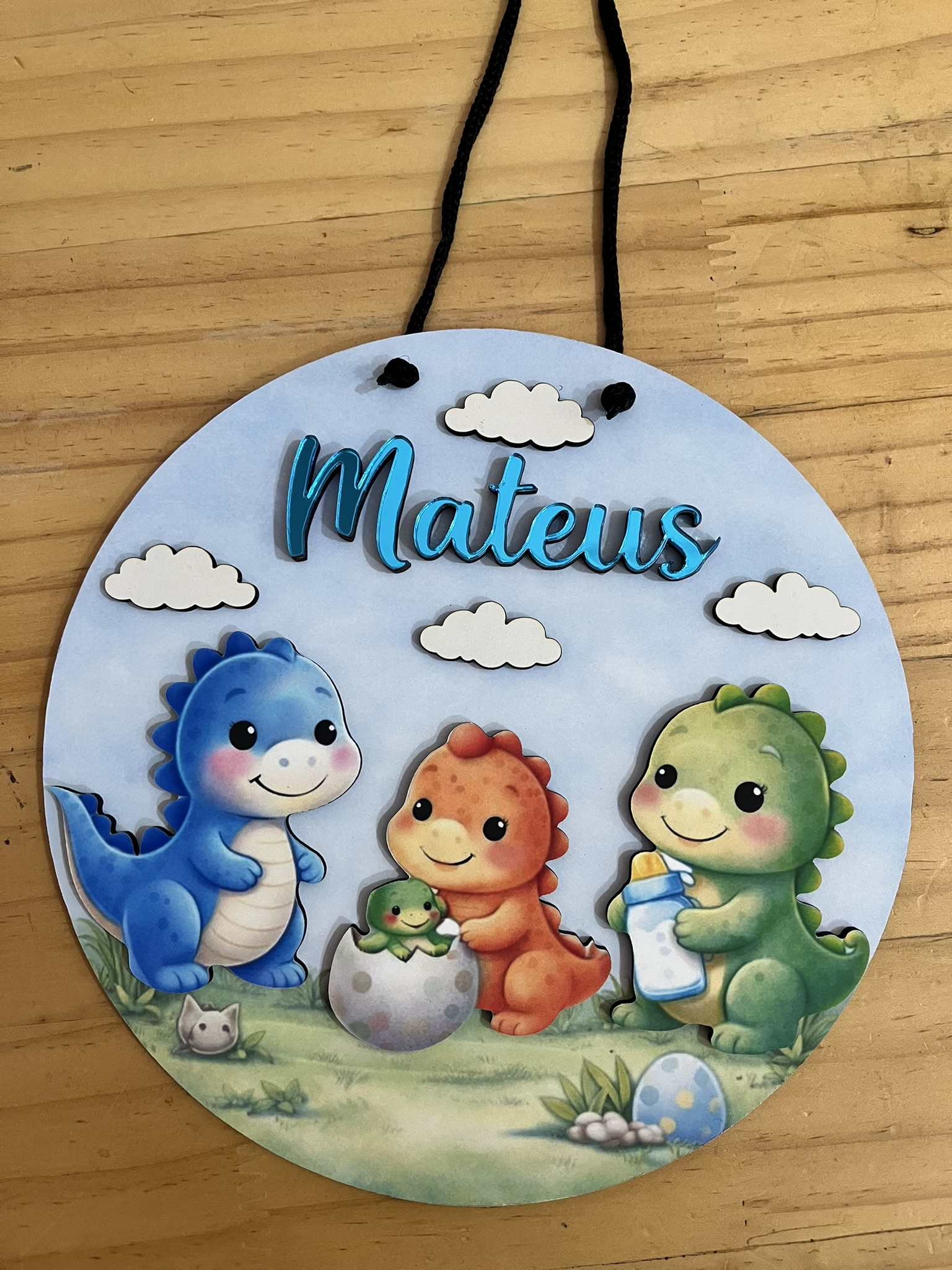 O Porta Maternidade Dinossauro Personalizado é uma peça delicada e encantadora para anunciar a chegada do bebê e decorar o quartinho com muito carinho.